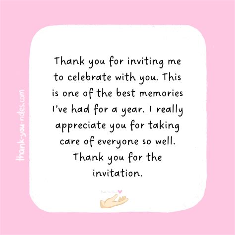 Thanks For Invitation Message - Thank you so much for inviting me to your party! Here are some thoughtful ways to say thank you for the party invitation: Thank you message for inviting me as your guest. When not at work, i do sports, lead a healthy lifestyle and keep up on everything that is connected with this. Nevertheless, it would help to develop a.
